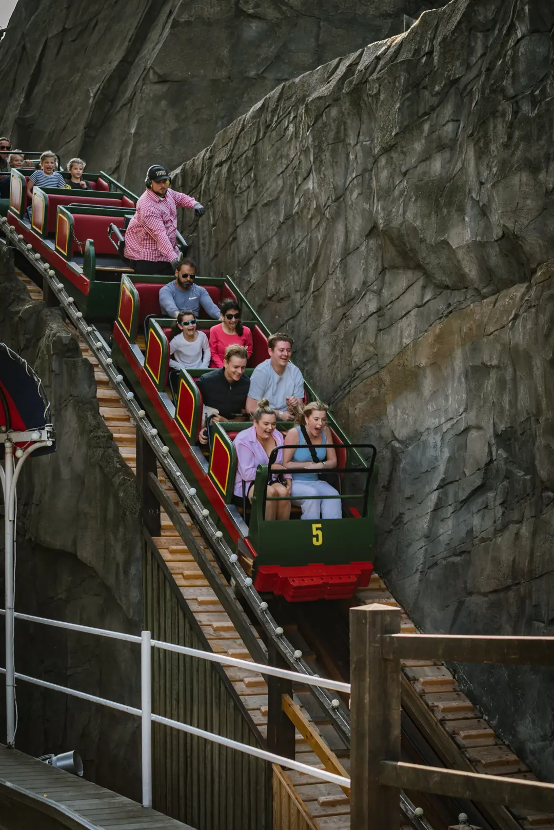 The excitement increases as the train of vehicles winds its way up the first incline. A rush of anticipation fills the air from the top of the roller coaster's peaks. A short artistic break – and then it begins. A thrilling roller coaster ride that evokes squeals and loud laughter. The beautiful wooden roller coaster has thrilled Haven's guests since 1914 and is for childlike souls of all ages – although younger children must be accompanied by an adult.